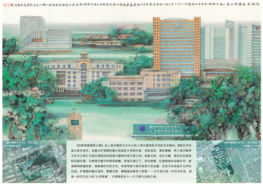 尤为珍贵的是,地图封面与背面的画作与题词来自国家一级美术师、著名画家汪家芳为上海市精神卫生中心建院90周年捐赠的画作。艺术家的社会担当,为这份地图注入了视觉的温暖与人文的关怀。