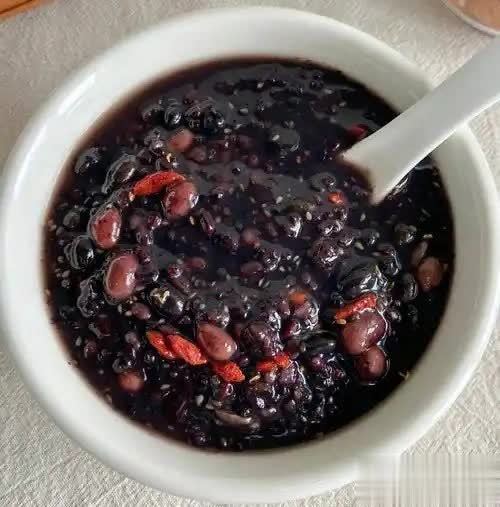 黑芝麻核桃粥食材:黑芝麻20克、核桃20克、大米50克、冰糖适量