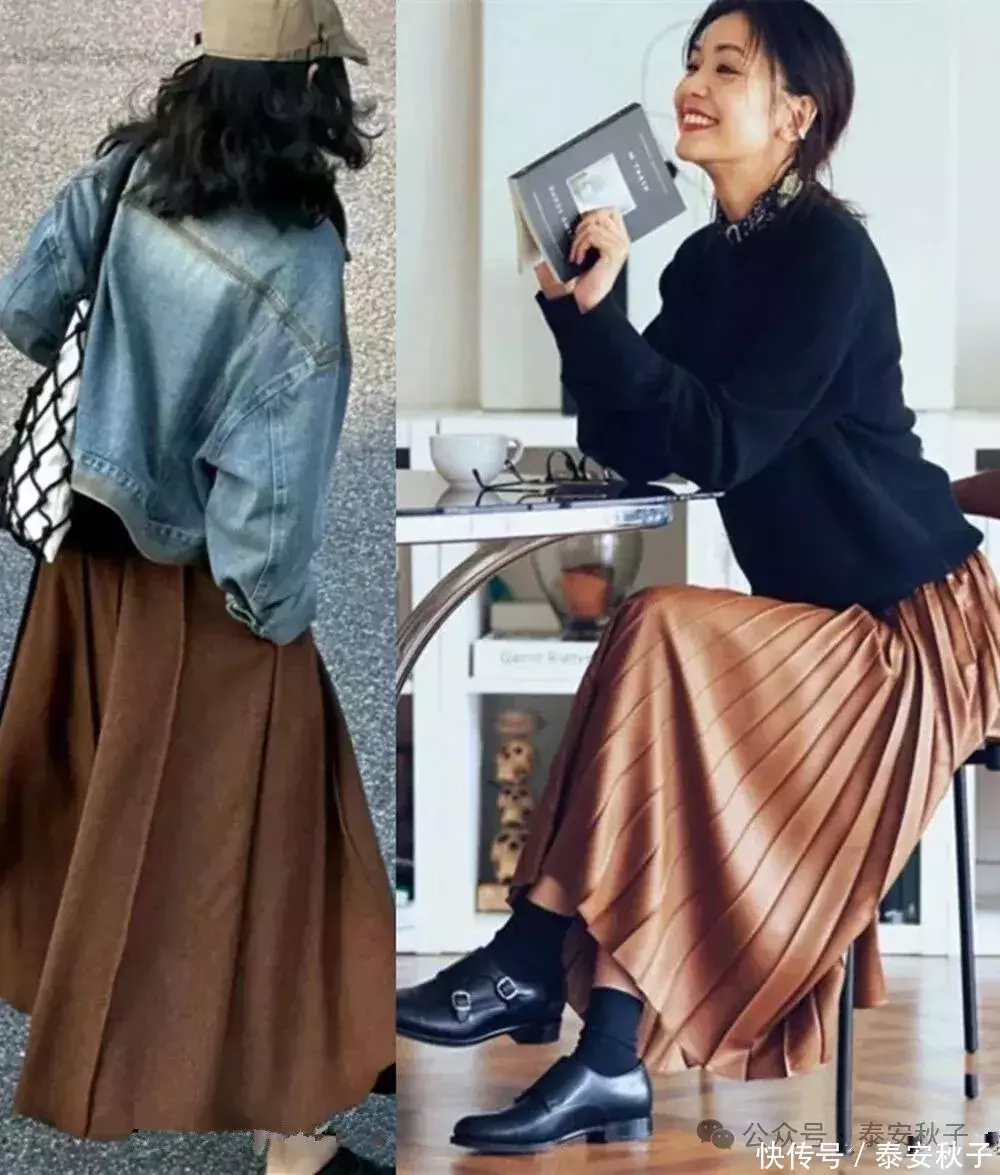 这种颜色的衣服穿上不仅有很好的显白效果,还能为我们营造出自然、又显高级的穿衣风格。要是你很喜欢复古风格的穿搭,秋天就选条栗子色的下装吧。