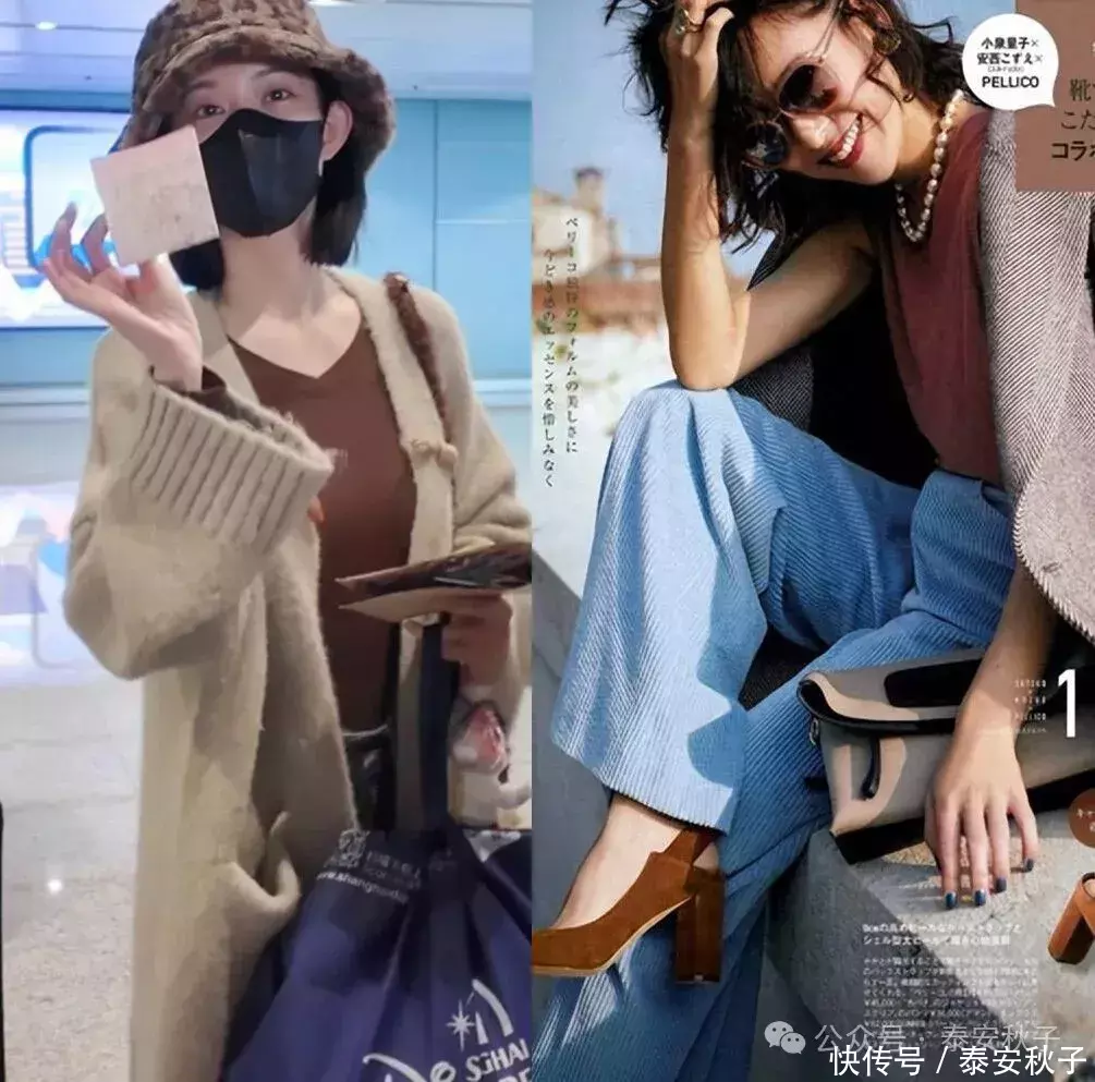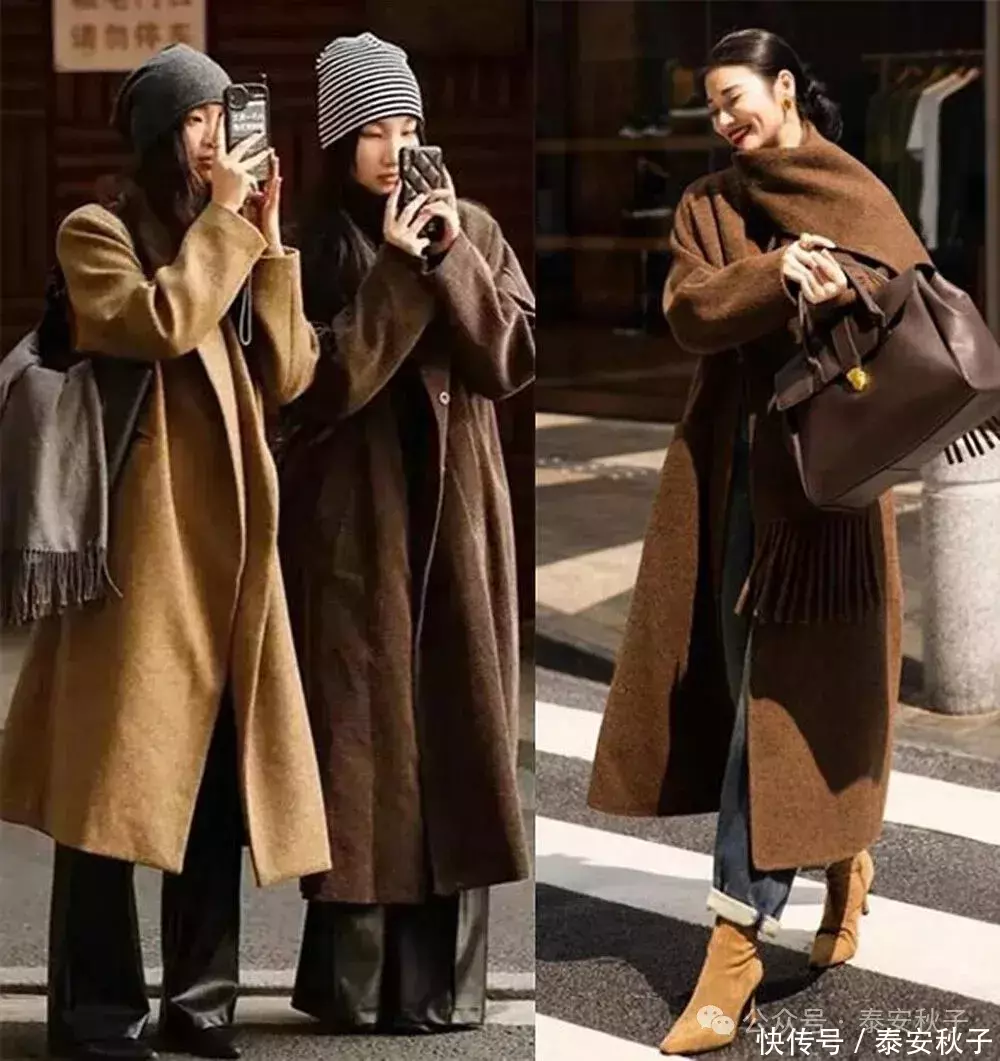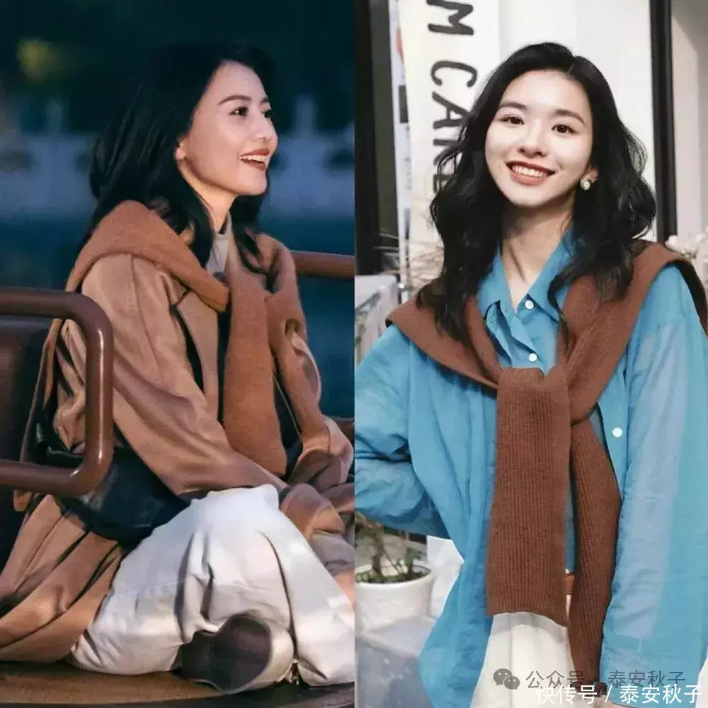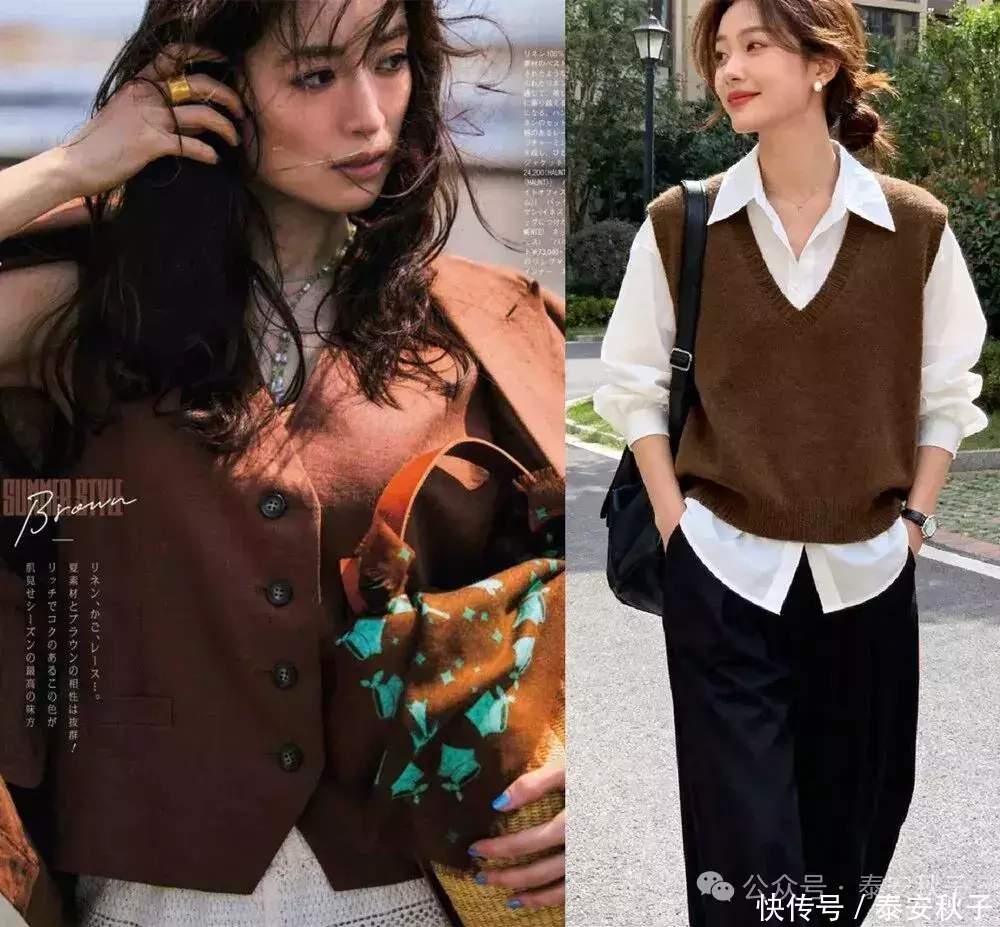 比如暗棕色开衫+同色裤觉得太普通的时候,可以选择栗子色的包包作为点缀,这样既不会破坏整体色调,又增加了时尚感,更高级。